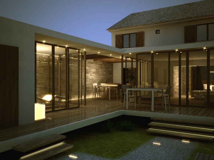 Extension en style contemporain d'un pavillion sur un lotissement assez etroit. L'extension concerne l'agrandissement du séjour de la maison, la création d'une terrasse et une pièce de loisir indépendante.
