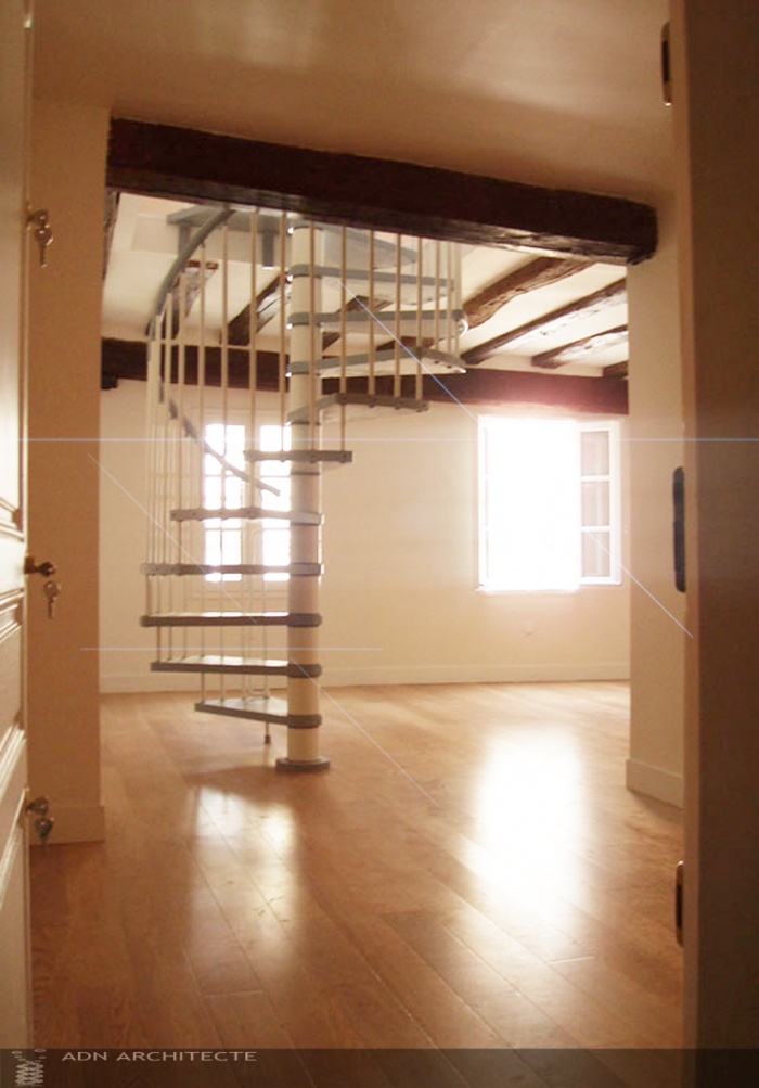 Vu le caractère des bâtiments, nous avons choisi de conserver les éléments caractéristiques de ces derniers (cheminées, moulures, poutres...)