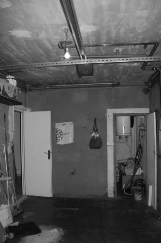 Vue sur salon (ancien garage voiture) /et sur jardin.